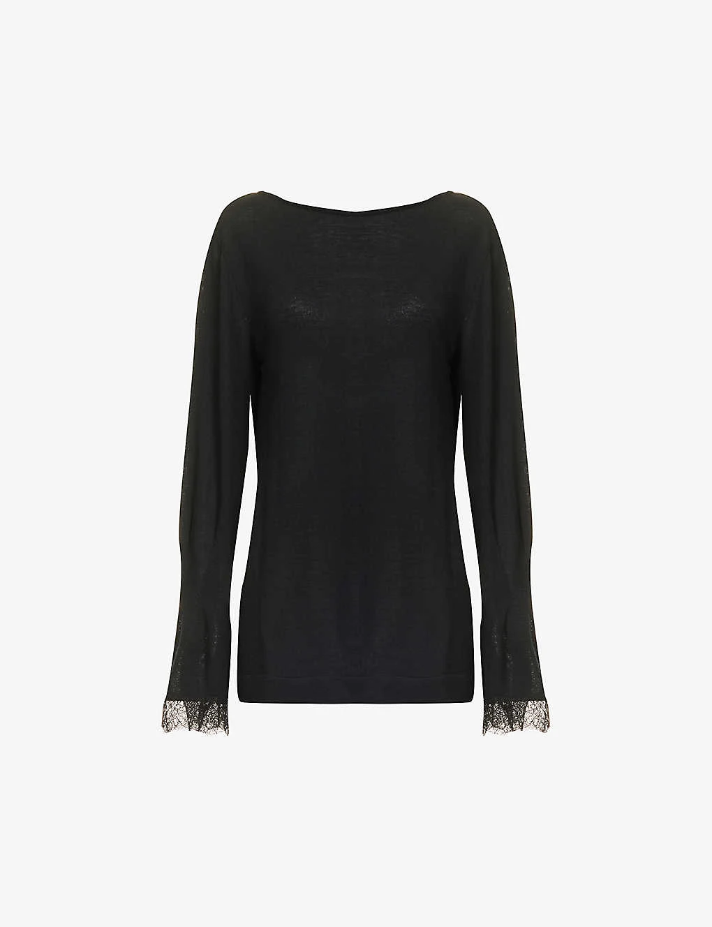 Alberta Ferretti Lace-trim Split-side Wool Knitted Top
