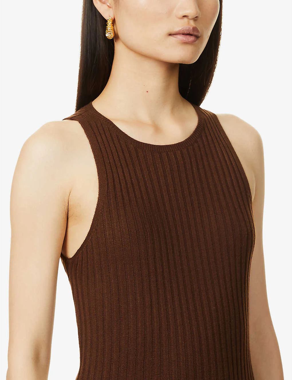- Slim fit, round neckline, sleeveless, open back, cut-out at back, with twist detail, all-over ribbed texture