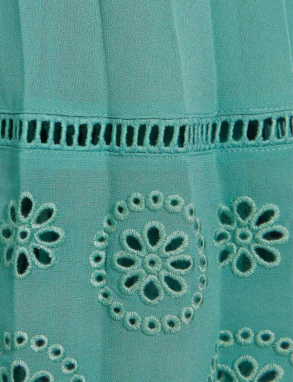 - Regular fit, scoop neckline, sleeveless, two-piece illusion, pleated skirt, floral embroidery at hem