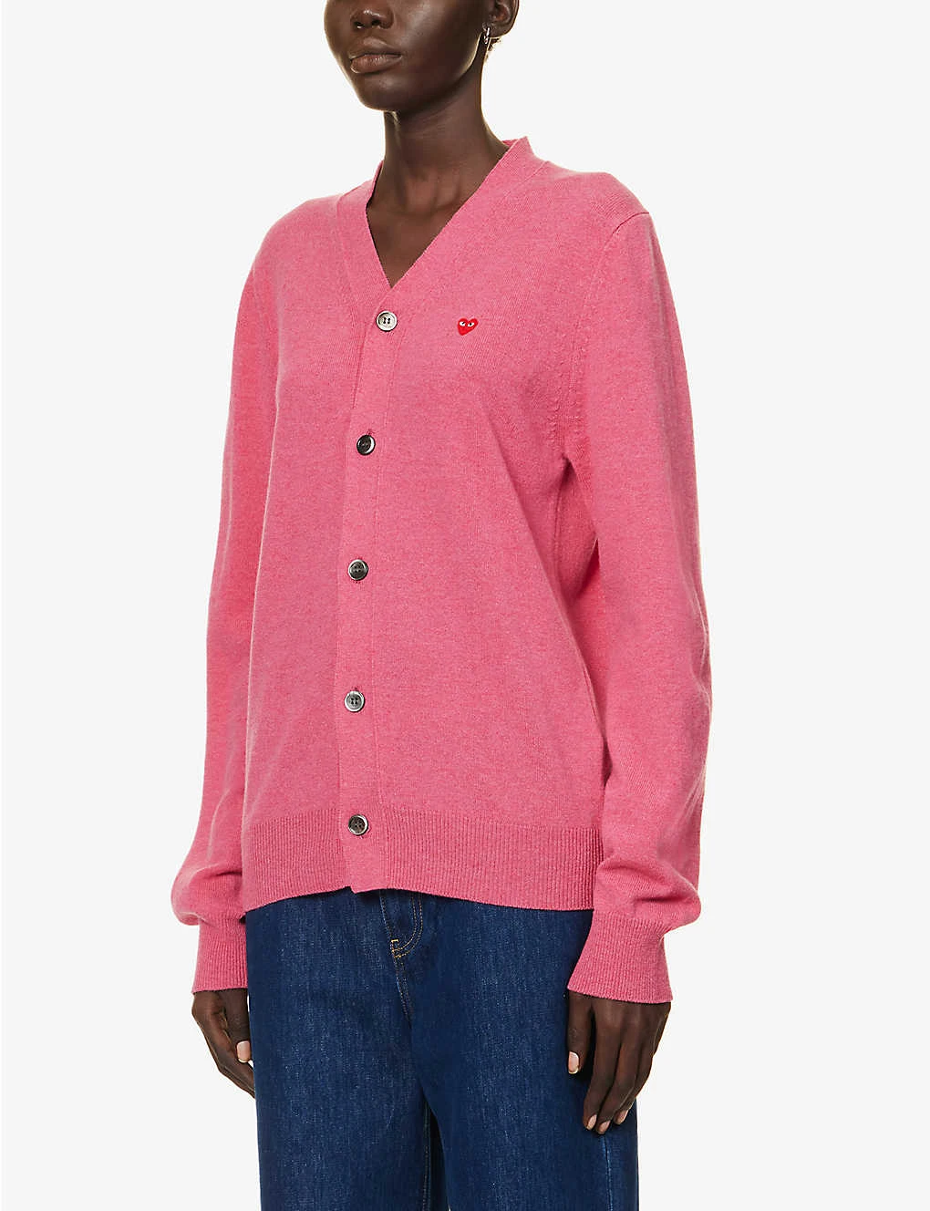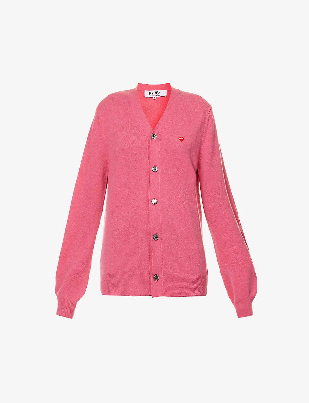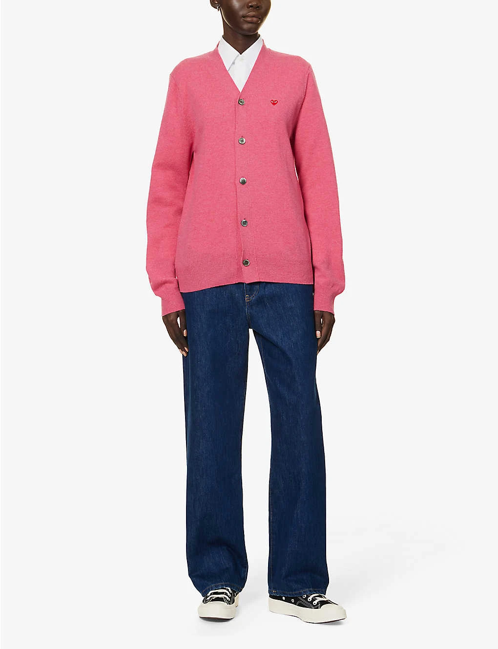 Comme Des Garçons Play Heart-embroidered Regular-fit Wool Cardigan