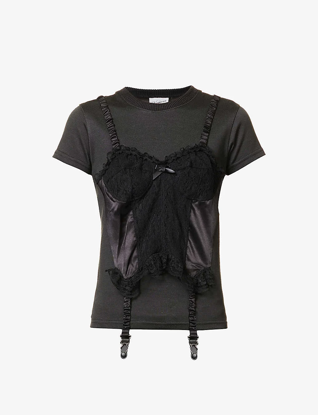 Be the first to review “Corset-appliqué Scoop-neck Woven T-shirt” Cancel reply