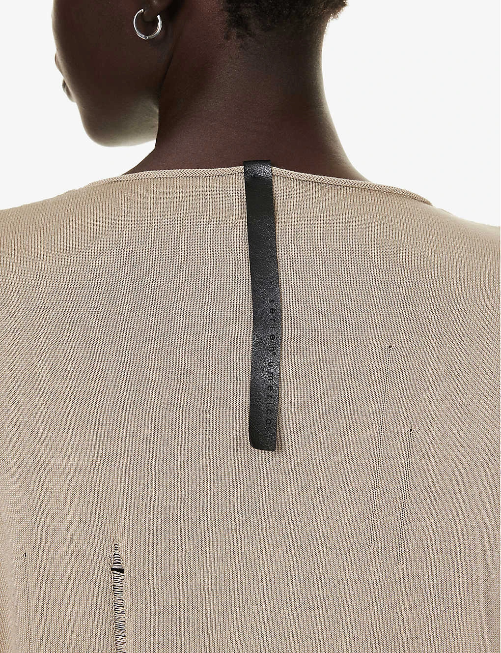 Distressed-panel Relaxed-fit Silk And Cotton Knitted Top