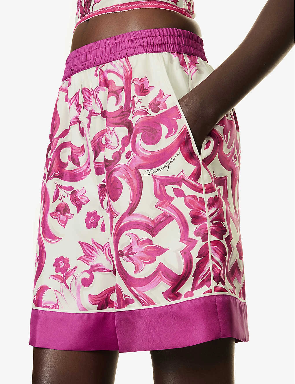Dolce & Gabbana Maioliche Graphic-print Silk Shorts