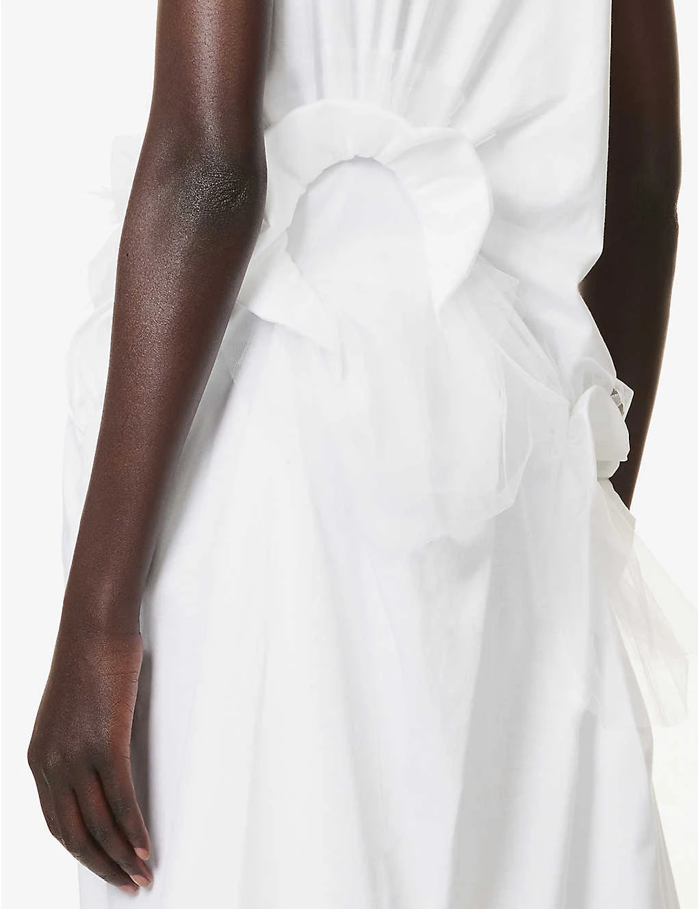 - Regular-fit, round neck, sleeveless, ribbed trims, gathered at front, tulle appliqué at front,