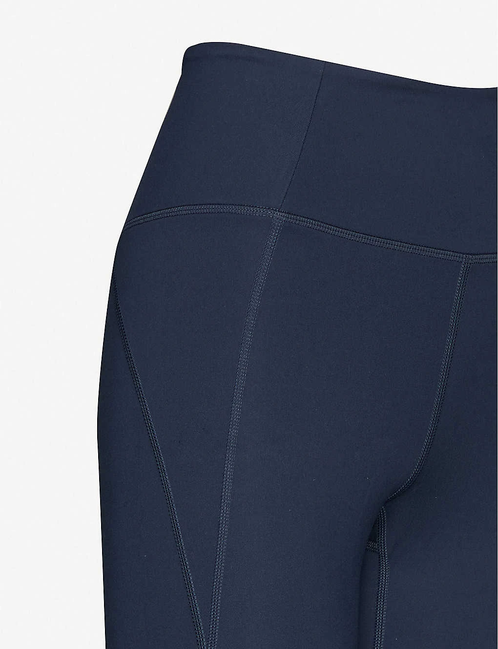 - Fitted, high rise, elasticated waistband, tonal stitching