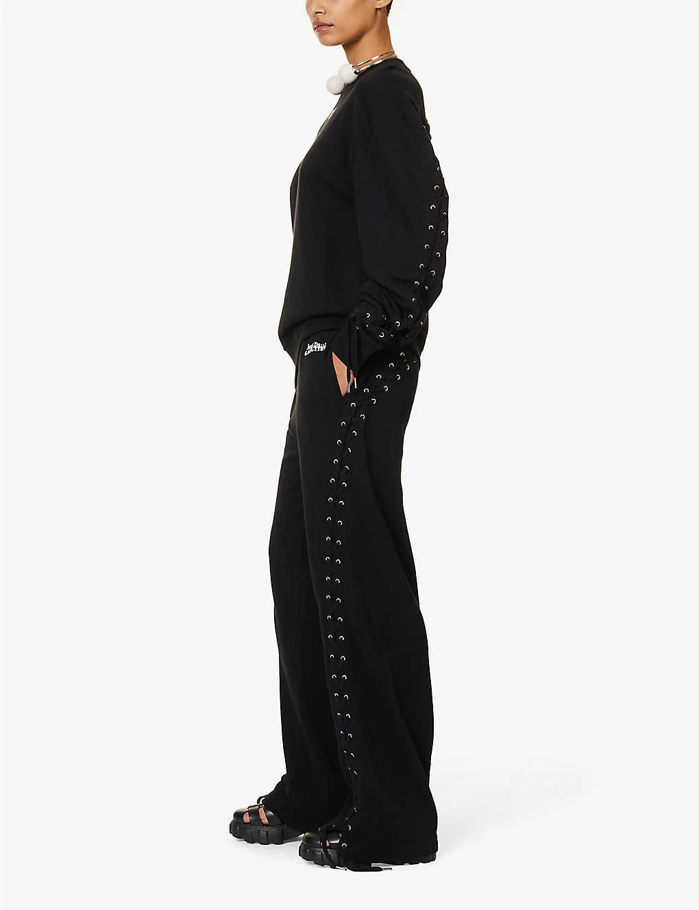 Jean Paul Gaultier Flower Lace-up Wide-leg Cotton-jersey Jogging Bottoms