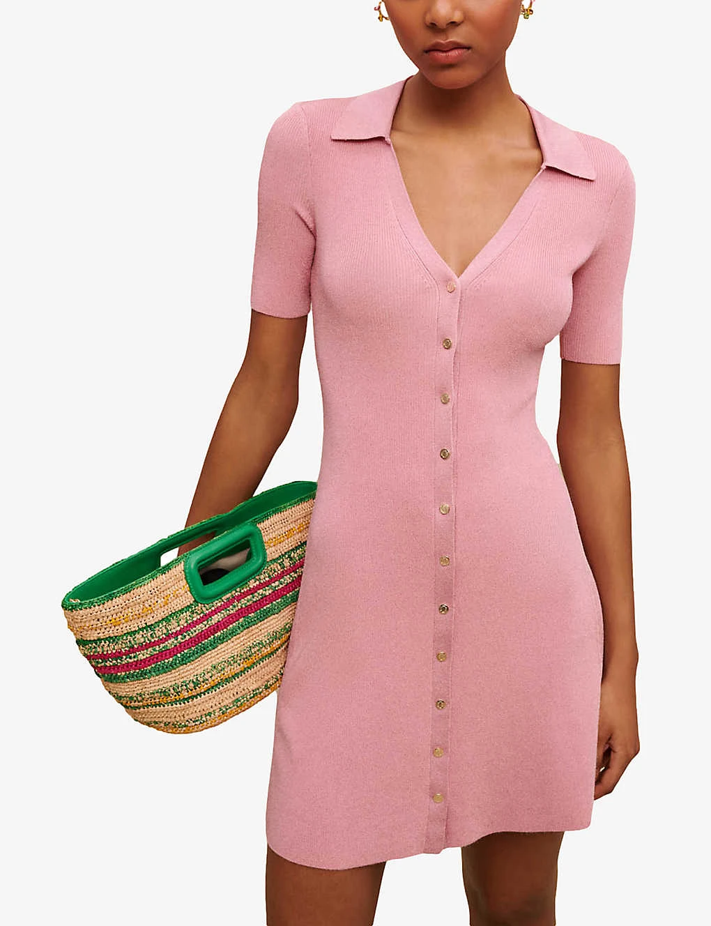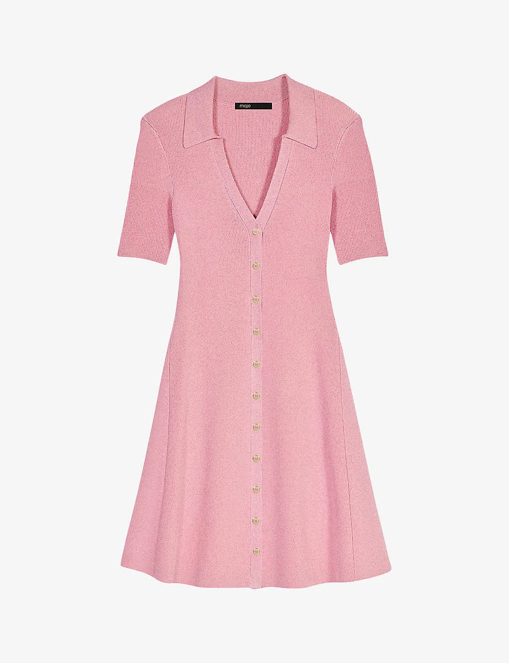 Be the first to review “Maje Metallic-ribbed Stretch-knit Mini Dress” Cancel reply