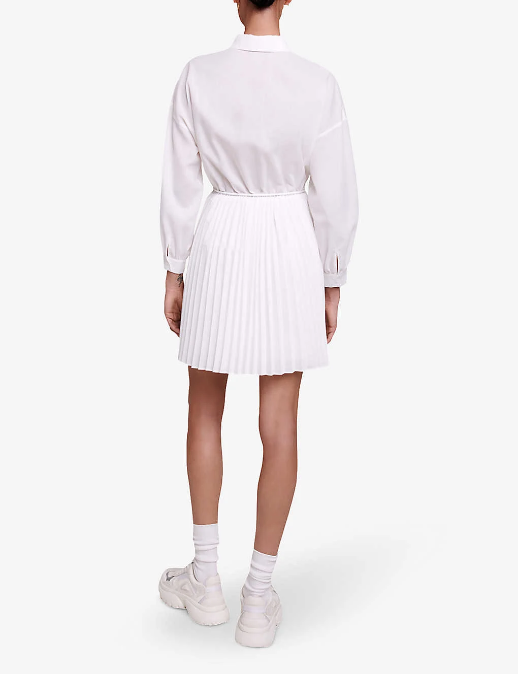 Maje Riwhite Floral-embroidered Pleated-skirt Woven Mini Dress