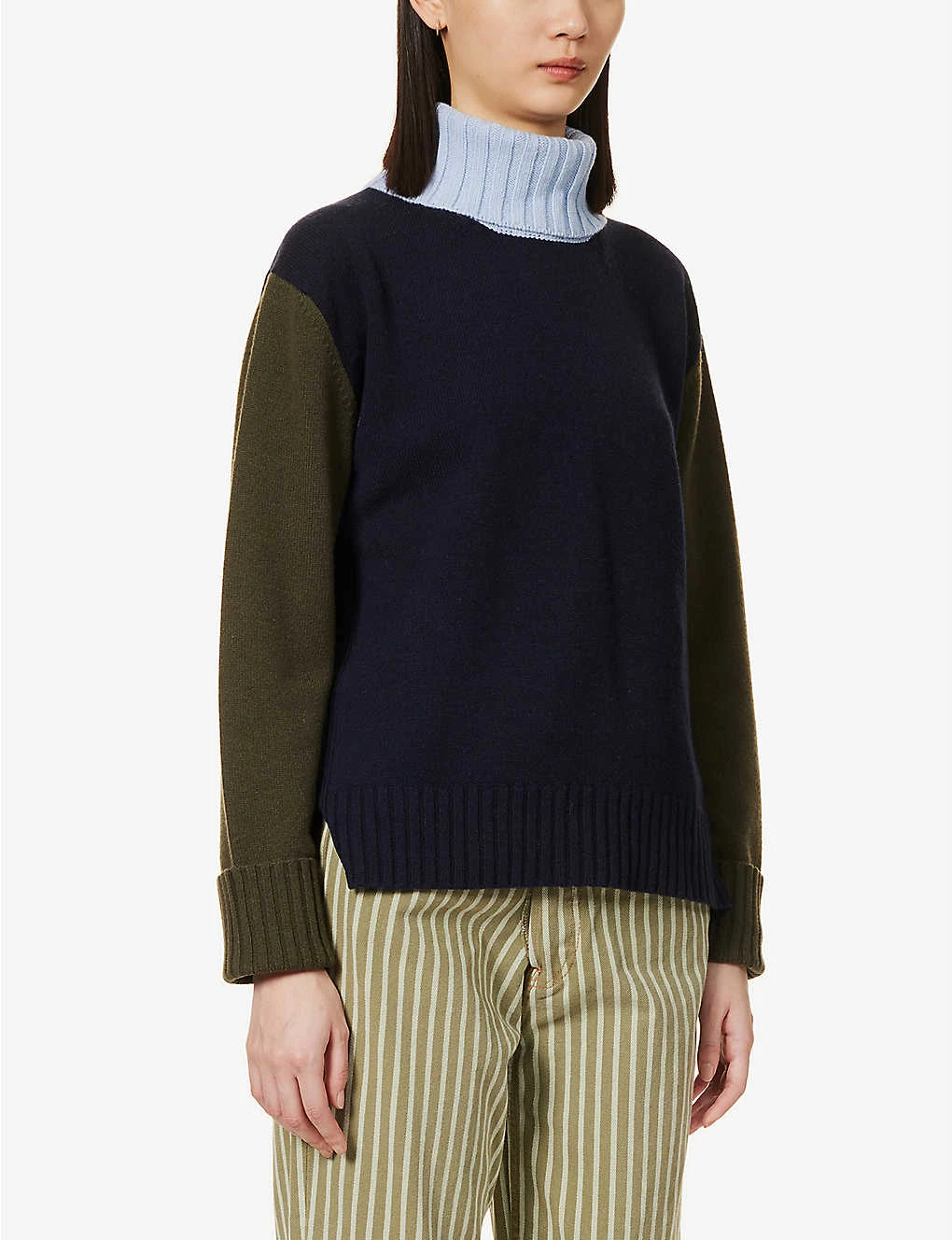 ME AND EM Colourblock Turtleneck Wool And Cashmere-blend Jumper