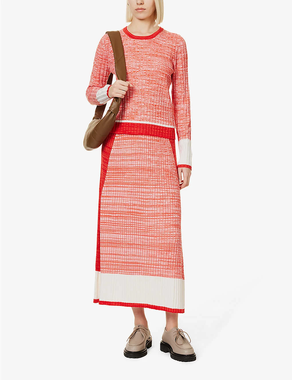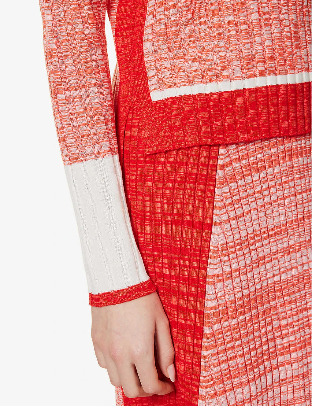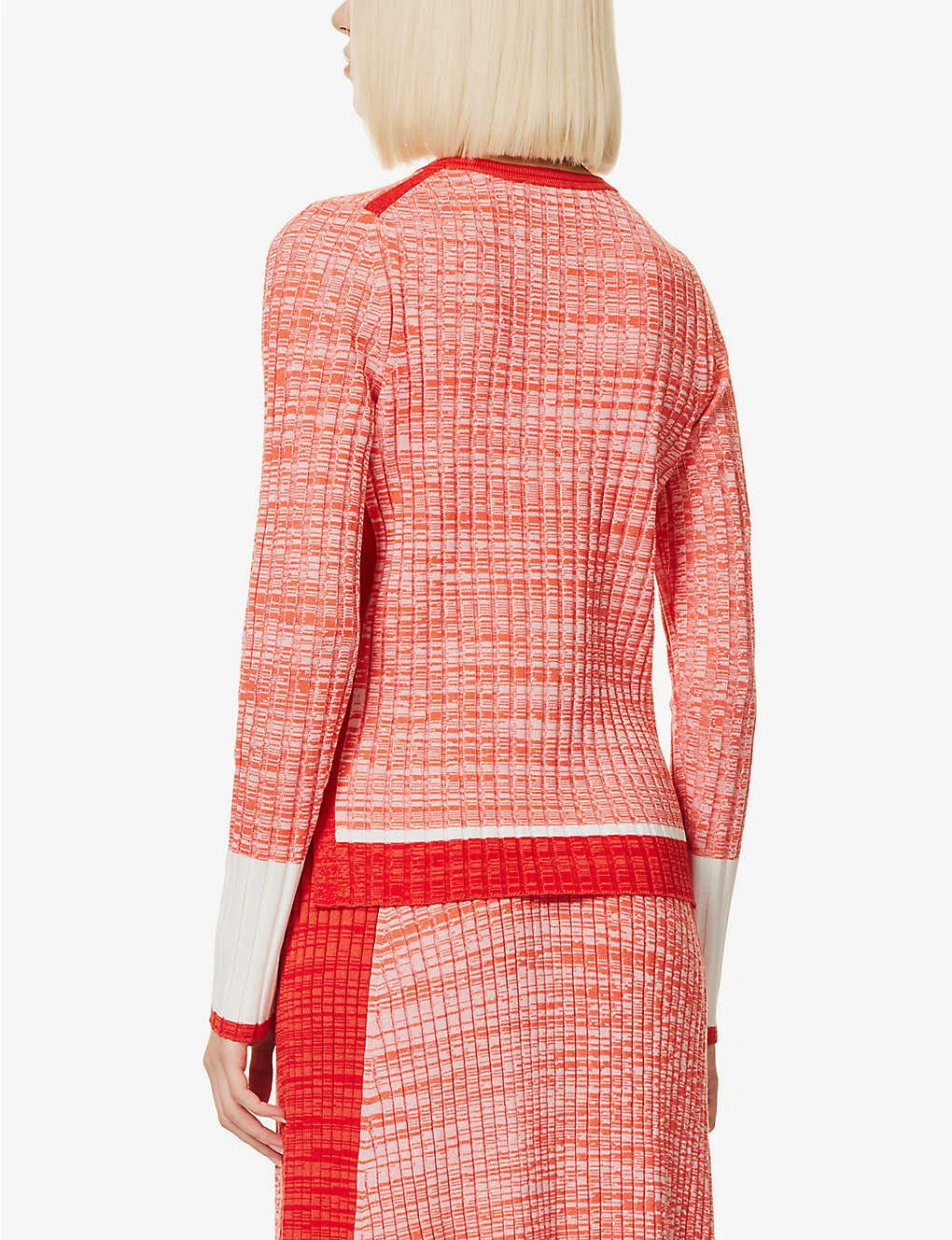 ME AND EM Contrasting-trim Ribbed-knit Wool-blend Top