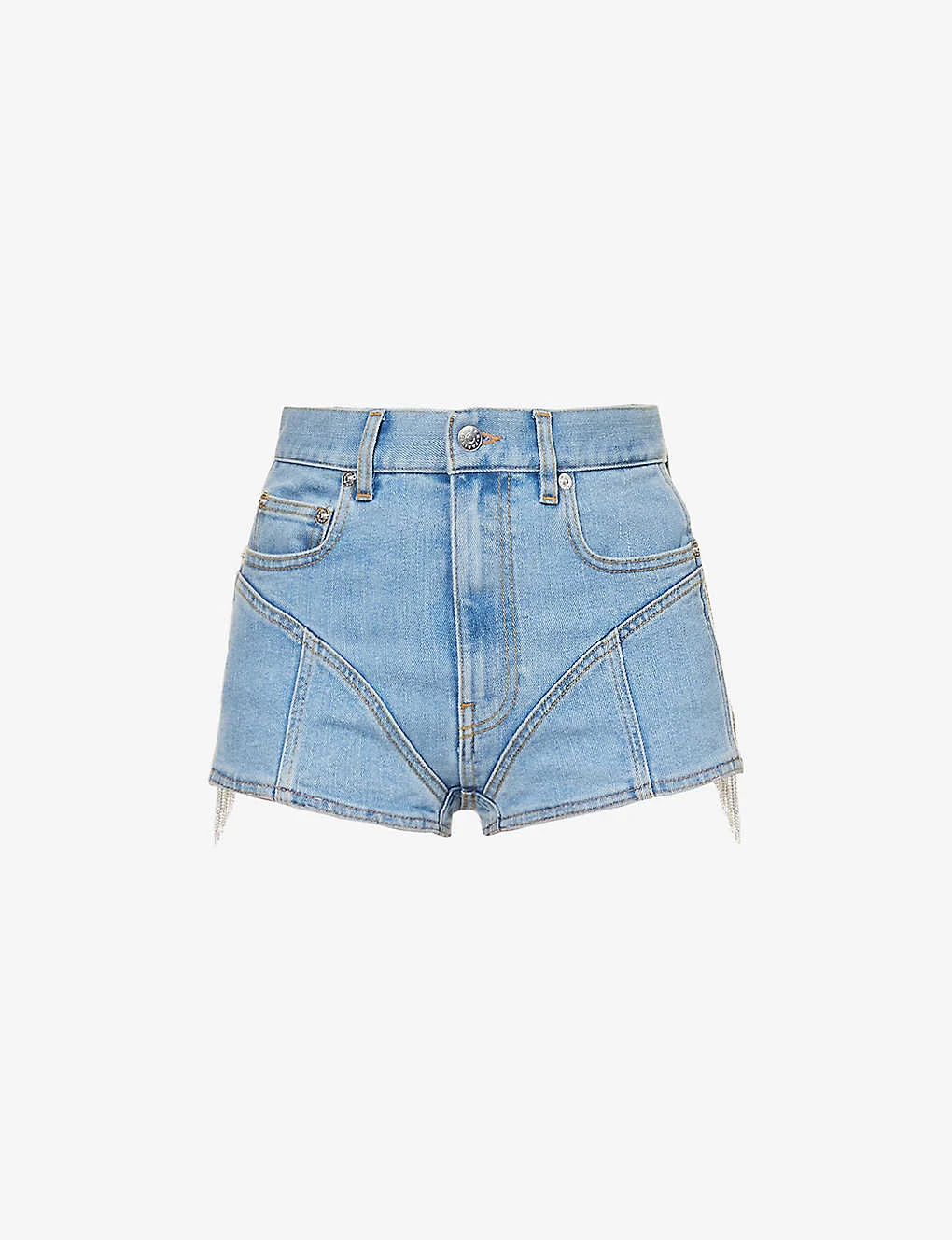 Be the first to review “Mugler Crystal-embellished Mid-rise Stretch-denim Shorts” Cancel reply