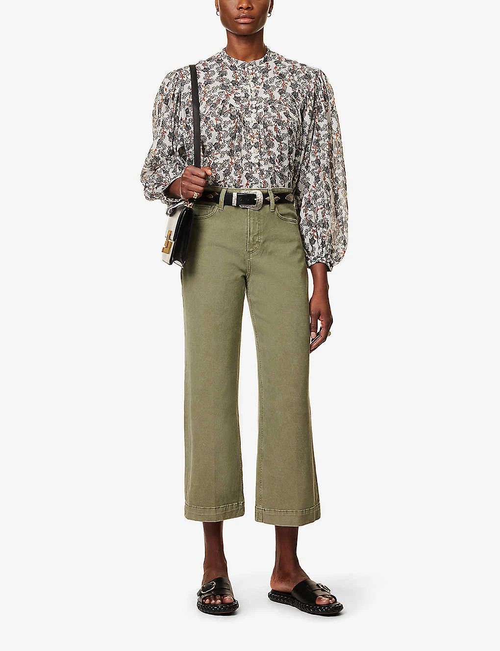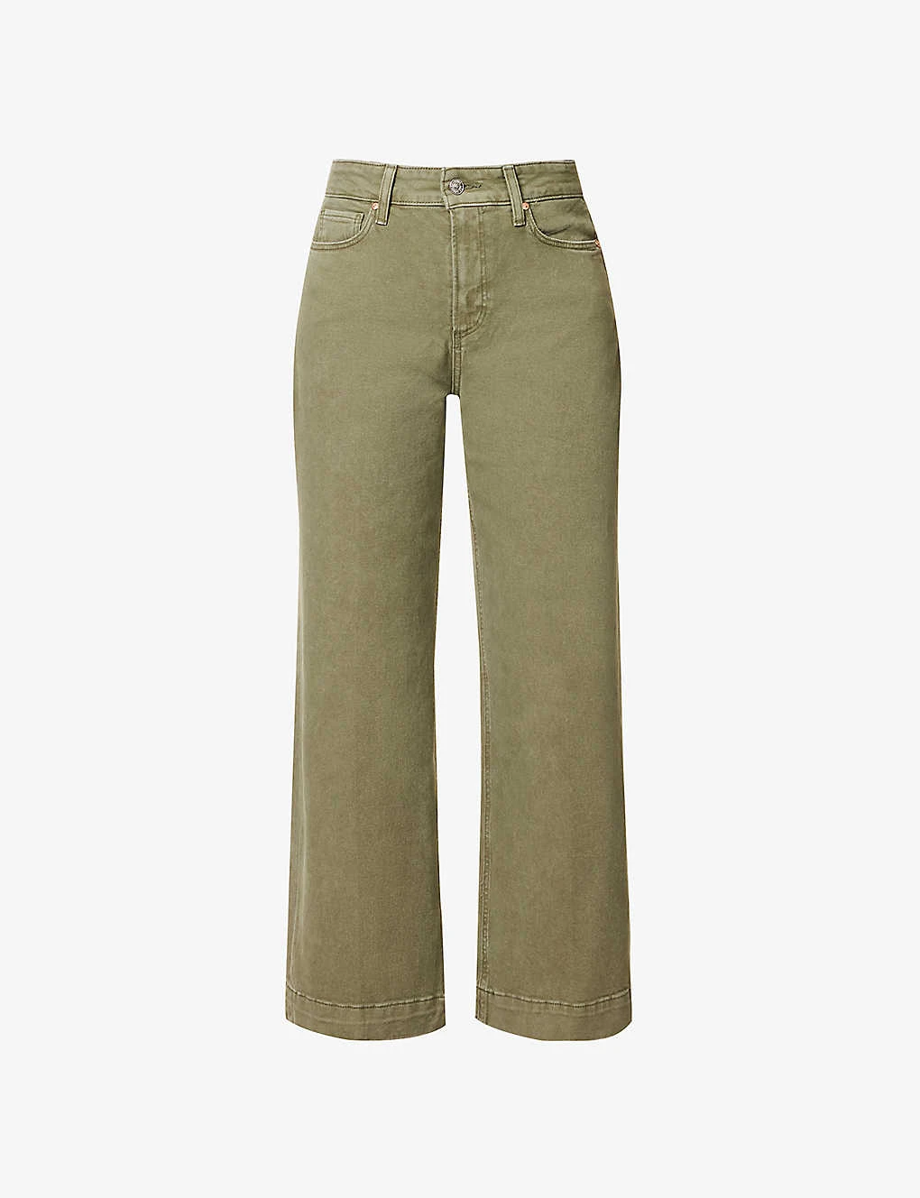 - Regular fit, mid-rise, wide leg, belt loops, branded silver-toned hardware, five pockets, pressed centre creases, cropped, brand patch at back