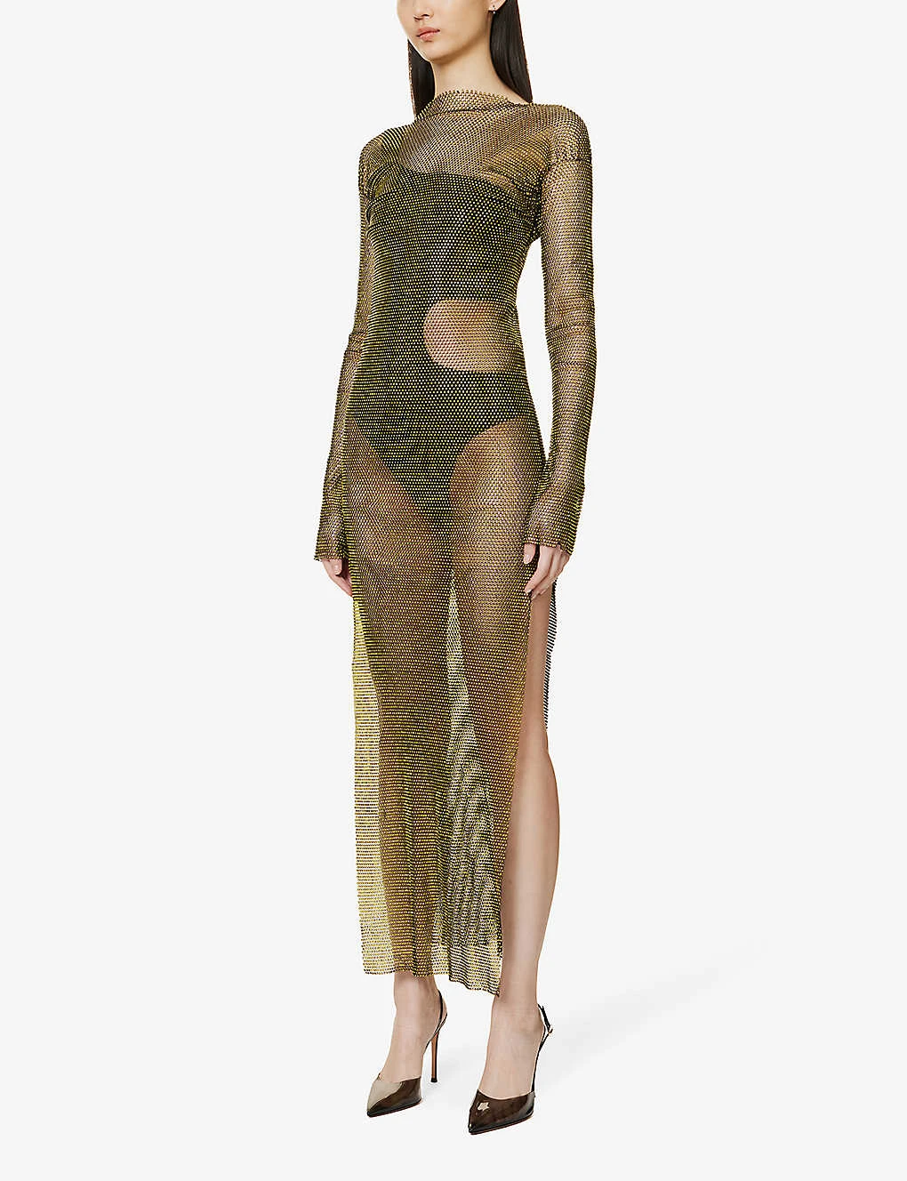 Be the first to review “Rhinestone-embellished Chainmail Maxi Dress” Cancel reply