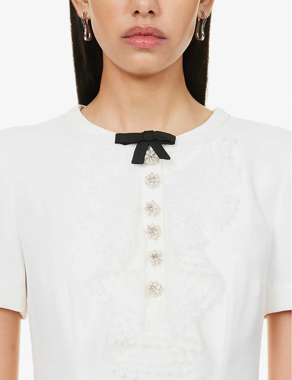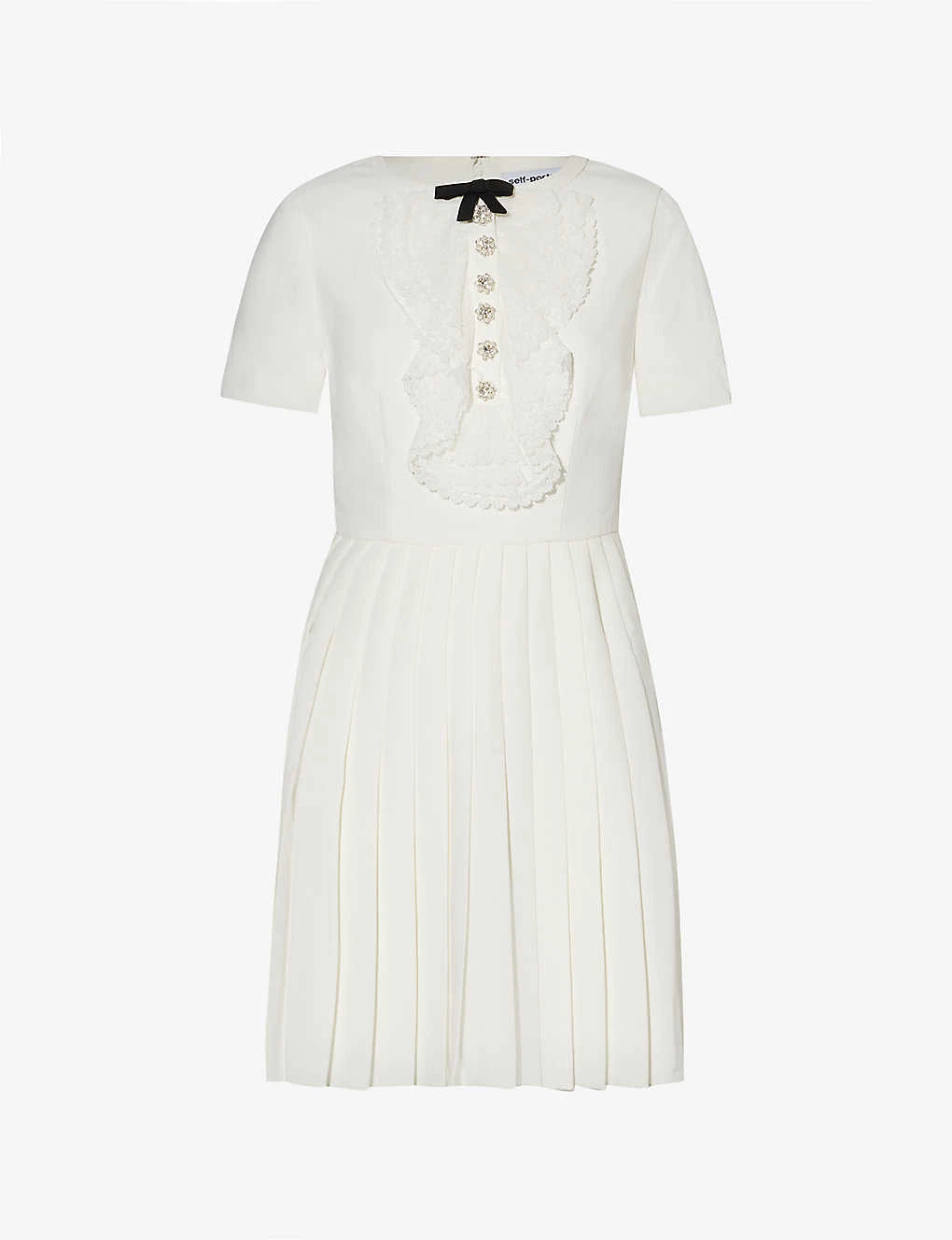 SELF PORTRAIT Lace-detail Short-sleeved Woven Mini Dress