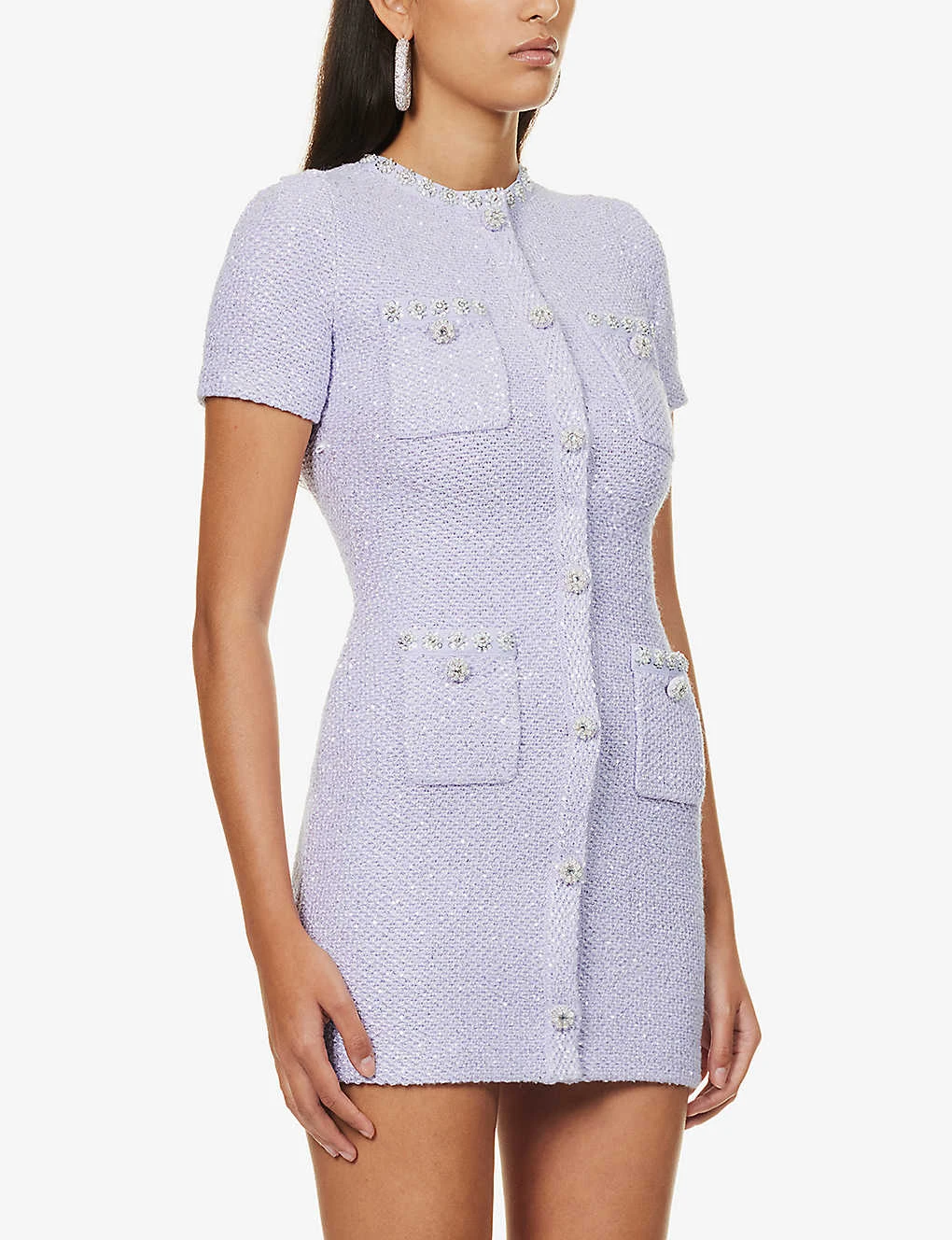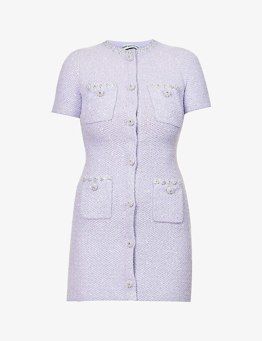 SELF PORTRAIT Sequin-embellished Bouclé Cotton And Wool-blend Knitted Mini Dress