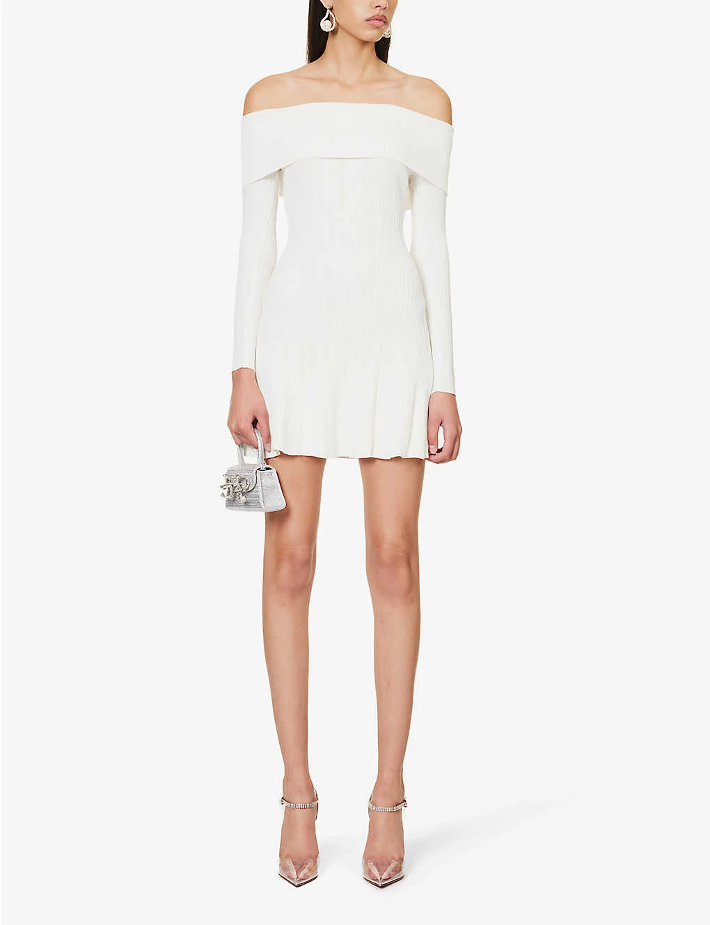 SELF PORTRAIT Strapless Bardot Knitted Mini Dress