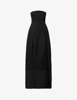 - Regular-fit, straight-across neck, strapless, all-over twill texture, branded hardware, silver-toned hardware, split at front