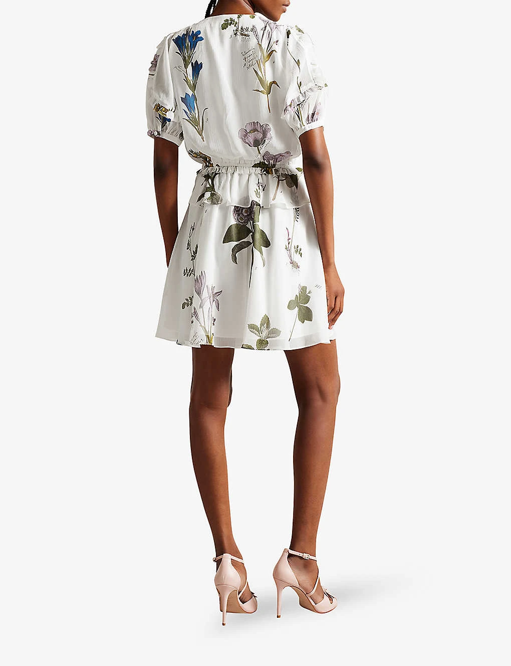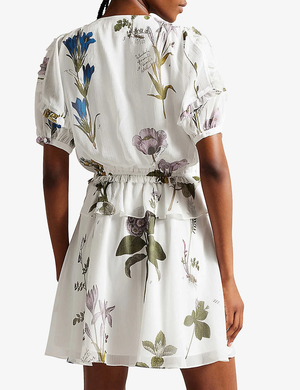 Ted Baker Jaliyaa Floral-print Puff-sleeved Recycled Polyester-blend Mini Dress
