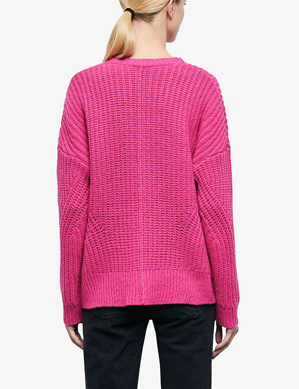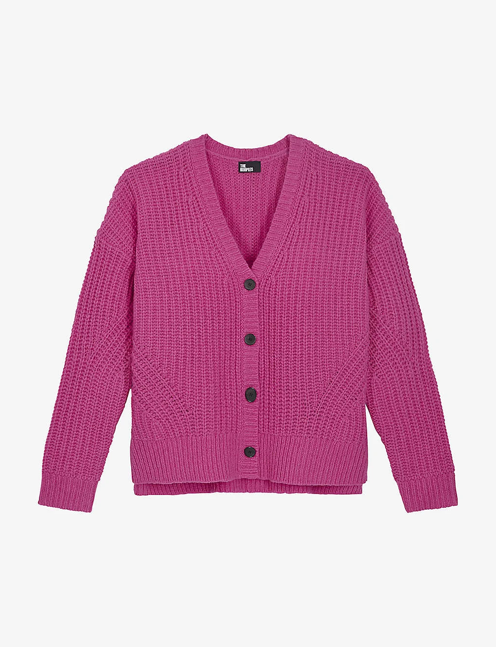 - V-neck, dropped shoulders, long sleeves, all-over ribbed knit