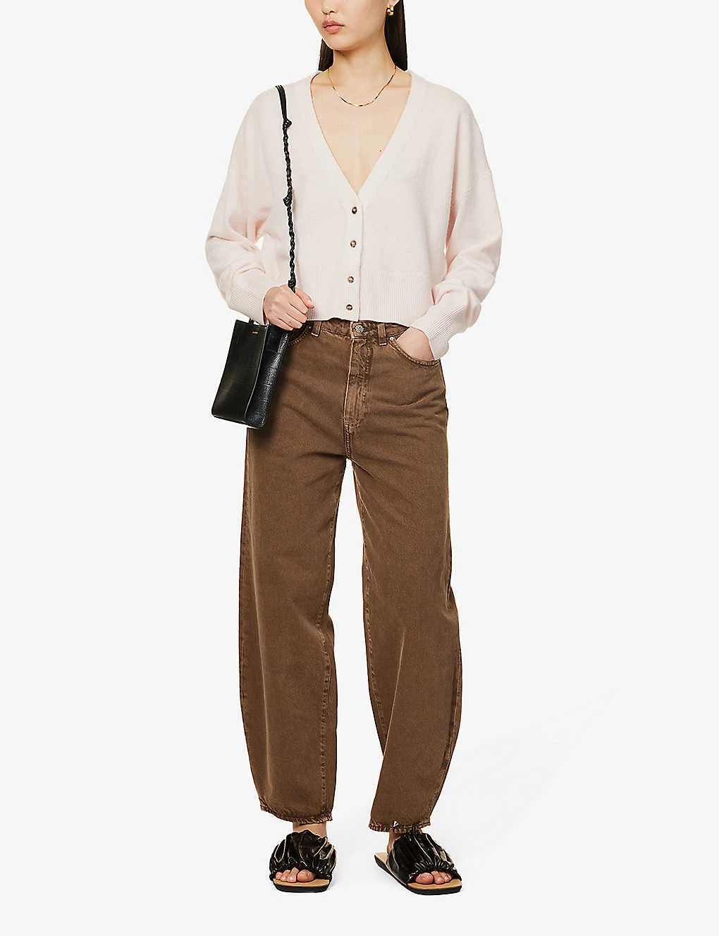 - Relaxed fit, V-neckline, dropped shoulders, long sleeves, brushed texture, cropped