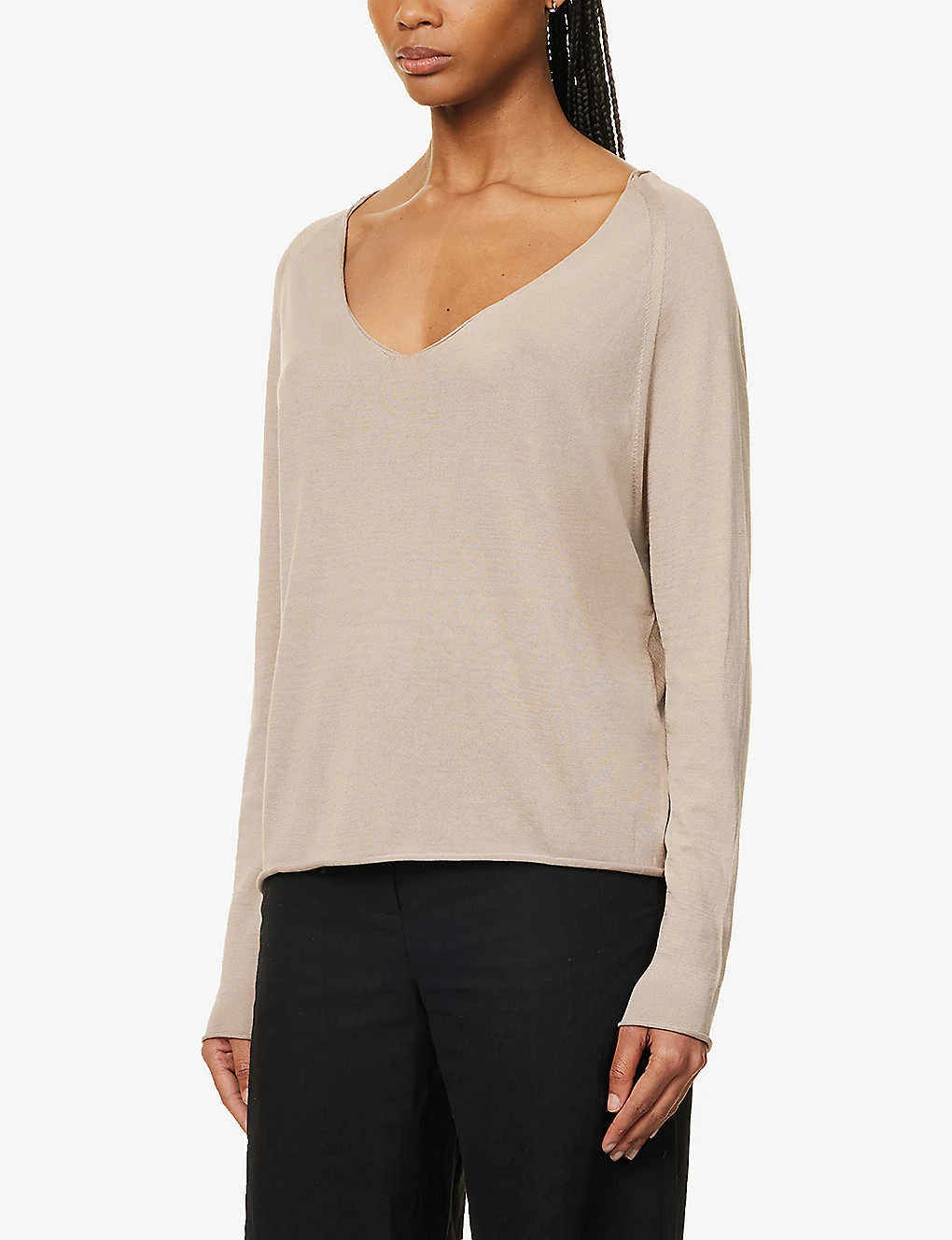 Be the first to review “V-neck Relaxed-fit Silk And Cotton Knitted Top” Cancel reply
