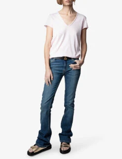 Zadig & Voltaire stretch-denim jeans Exposed button and concealed zip-fly fastening at front High-rise, skinny, cropped, belt loops, two zip fastening slip pockets at front, non-functioning jet pocket at front, buckle at side, branded silver-toned hardware, branded leather patch at back waistband, v-shaped yoke at back, patch pockets at back, raw hem 98% cotton, 2% elastane Machine wash True to size Size 28: Rise 10″”, inside leg 26.6″”, leg opening 13″” Model is 5ft7” and wears a size 28